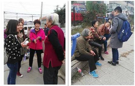 2016年10月16日下午,全班同学在基地集合,教师明确任务和注意事项后,五个小组分散调查,老师跟随走访。调查内容为:西沙屯地块的用地现状(5组合作)、道路交通情况(1组)、公共基础设施规模和分布(1组)、绿地景观(1组)、基地历史文化特色、居民情况和管理组织机构(1组)。