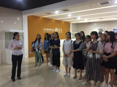实地走访后,同学们步入郑各庄村史展厅,听取该村党办李主任和宣传部尤主任的讲解。据介绍,郑各庄的发展经历了相当长的一段奋斗历程,在最初一穷二白的情况下,村民委员会主任黄福水带领大家从事建筑业务,慢慢摆脱了贫穷走向富裕。郑各庄的成功模式是,农民将兜里的钱掏出来汇集在一起,村民将宅基地和承包的土地也交给村集体经营,使得村子里出现了许多可以持续发展的产业。郑各庄的发展规划由宏福集团主导,村民参与企业入股,企业和村民互相信任,共同富裕,是农民自主城镇化的典型代表。
