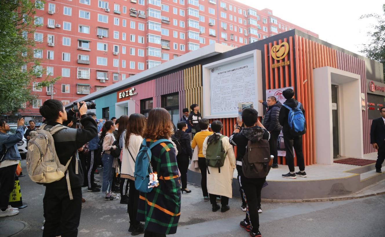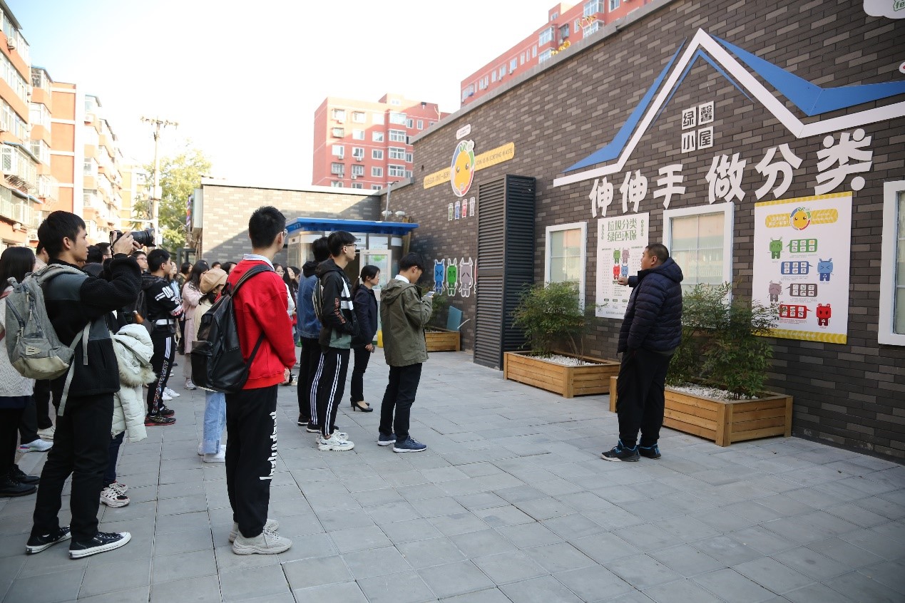 首先,在社区安全方面,劲松北社区对所有老旧裸露线路进行系列规整,将线路隐于墙体和地下,既减少安全隐患又使外墙美观。同时,每户在配有门禁系统的基础上都加装两个摄像头,除警慑不法分子外,更大的作用在于方便社区工作者查看社区老人的出行情况,对长时间未有出门记录的老人及时上门慰问,防患于未然。其次,在绿化美观方面,牛主任带着大家参观了收容流浪猫的美好喵屋、富有文化气息的艺术墙、路边街景以及由中央美院设计的前身为自行车库的多功能中心。牛主任着重向师生们介绍了当前社区垃圾分类的新成果——“绿馨小屋”,吉祥物“分小萌”吸引了众人的目光。再次,在便民利民服务方面,不管是门口可为老年人提供优惠与上门服务的理发店、在阳光最充足地方设立的晾衣架,还是物业中心旁自助扫码的面条机、路边可免费借用家用工具的匠心工坊,都体现出社区深厚的人文关怀。最后,牛主任向大家娓娓道来了社区文娱建设的发展过程,由居民自由投票选出的各色商业网点、定期放送电影的“美好会客厅”、提供棋牌毽球乒乓球等休闲娱乐的社区广场都给师生们留下了深刻印象,和谐自在的社区氛围令大家难以忘怀。
