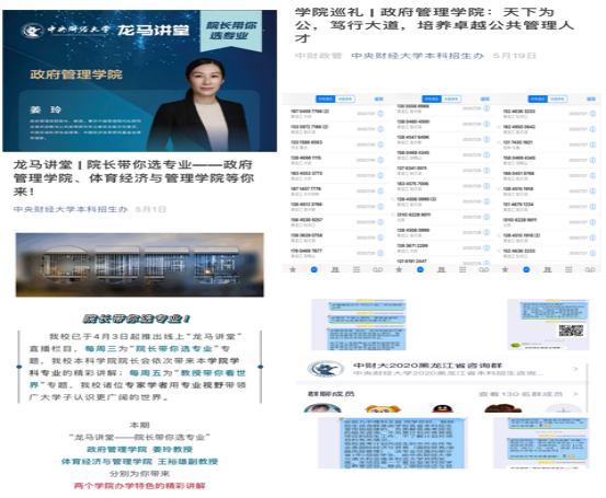 学院不断完善“招生-培养-就业”联动机制,完成本科生招生计划和报考指南的修订工作,成立招生宣传工作领导小组,制定《学院疫情防控期间本科招生宣传工作实施方案》,做好线上“龙马讲堂”“院长带你选专业”、学院名片微信公众号推送、学院巡礼、财宝儿说等招生项目工作,更新学院宣传视频、宣传材册等,建立本科招生分省咨询QQ群,用于发布学校招生讯息、解答考生及家长招生问题咨询,并开设3部招生咨询专线电话,学院教学科研办公室、学生工作办公室在招生期间每天8小时接听招生咨询电话300余次,多渠道多种形式完善招生机制,完善线上宣传平台搭建和运行管理,做好本年度本科对口招生省份招生宣传工作,进一步提高了生源质量,招生宣传工作取得良好成效。