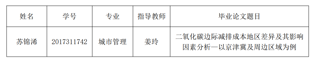 近日,2021年北京市普通高等学校优秀本科生毕业设计(论文)评选结果公布,AC米兰2017级城市管理专业本科生苏锦浠的毕业论文荣获优秀毕业设计(论文),论文题目为《二氧化碳边际减排成本地区差异及其影响因素分析—以京津冀及周边区域为例》,指导教师为姜玲教授。