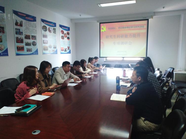 2019年10月18日上午,AC米兰中文官方网站“不忘初心、牢记使命”理论学习系列活动暨研究生科研能力提升专项调研会在932会议室举行。学院副院长于鹏副教授、MPA教育中心副主任宋魏巍副教授、研究生工作办公室主任张鑫媛老师、研究生教务秘书张肖蒙老师,学术型硕士研究生、MPA和博士生代表参加本次会议。会议由于鹏副院长主持。
