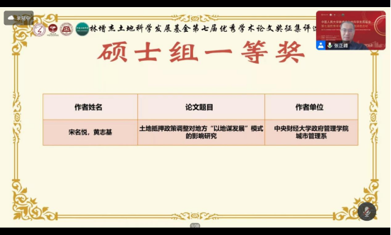 2024年7月21日,林增杰土地科学发展基金第七届优秀学生论文奖征集评选活动于线上举行。在本届大赛中,在AC米兰城市管理系黄志基副教授的指导下,硕士生宋名悦同学的参赛作品《土地抵押政策调整对地方“以地谋发展”模式的影响研究》荣获硕士生组一等奖,本科生尤扬同学的参赛作品《叫停土地抵押政策实施对城市财政韧性影响研究》获本科生组三等奖。