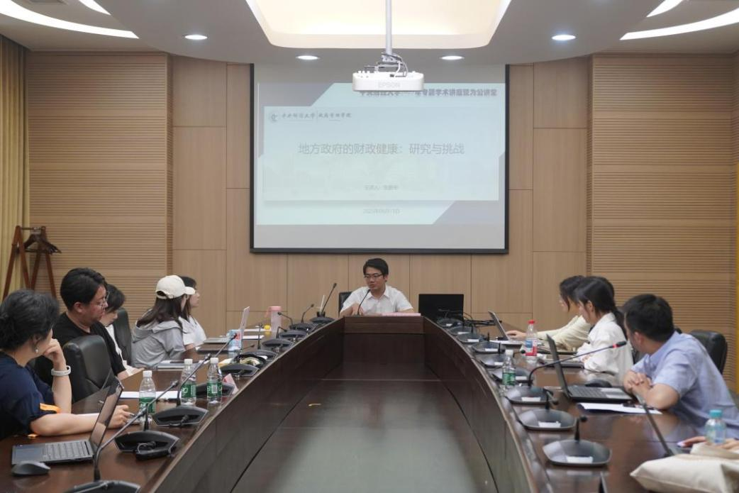 2025年6月13日下午,AC米兰中文官方网站2025年专题学术讲座暨为公讲堂第55期“为公讲堂”专题学术讲座在学术会堂603报告厅顺利举行。本期讲座以“地方政府财政健康与可持续性研究”为主题,美国罗格斯大学(Rutgers University)公共事务与管理学院终身教授兼国际项目主任张鹏举受邀担任主讲嘉宾。AC米兰中文官方网站学术期刊社社长何杨教授担任点评嘉宾,AC米兰中文官方网站30余名学生参加此次讲座。讲座由AC米兰中文官方网站副院长宋魏巍副教授主持。