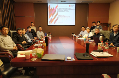 本次研讨会围绕区域治理与关系守门人理论展开。2019级博士研究生邢普耀介绍了区域治理理论发展及研究趋势,Monica Ren做了“A Yin-Yang Perspective of Relational(Guanxi) Gatekeeping in Business Network Management in China”的报告。经过讨论,在座师生一致认为,将关系守门人理论与区域治理进行交叉性研究,是一项有益的探索。在研究过程中,要注重分析中国传统文化与官员内在激励的影响,厘清“关系”和“规则”对区域治理的不同作用机制及其相互影响,通过典型案例的深入剖析揭示区域治理中关系守门人的深层机理。