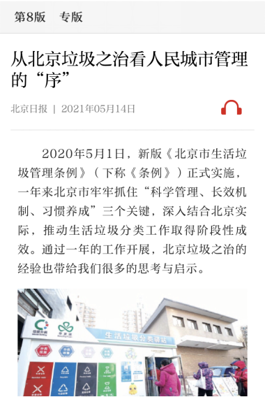 5月14日,AC米兰城市管理系主任王伟副教授、本科生王盼兮在《北京日报》发表题为《从北京垃圾之治看人民城市管理的“序”》的文章,就北京市垃圾治理问题发表观点和见解。