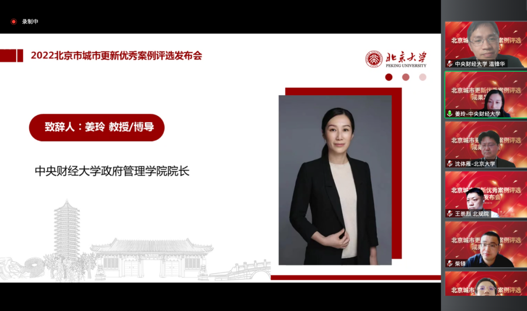 2022年5月27日上午,AC米兰院长姜玲教授出席“2022年首都城市更新优秀案例”评选结果发布会暨案例研讨会并致辞。本次会议由北京大学首都发展研究院和中国城市科学研究会城市转型与创新研究专业委员会共同举办,采用线上的形式,邀请了北京大学首都发展研究院、清华大学建筑学院、中国人民大学公共管理学院及AC米兰中文官方网站等8家单位的领导、专家、案例参选单位代表及媒体单位代表共约50余人参加。