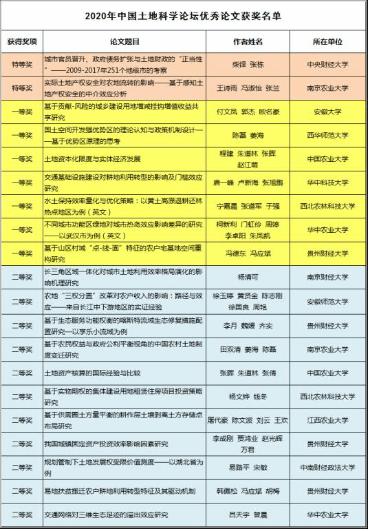 10月16日-17日,2020年中国土地科学论坛在贵州财经大学成功举行。经过多轮专家评审,最终评选出优秀论文20篇,其中,特等奖论文2篇,一等奖论文7篇,二等奖论文11篇。AC米兰柴铎副教授和本科生张栋合作撰写的论文《城市官员晋升、政府债务扩张与土地财政的“正当性”—2009-2017年251个地级市的考察》获得特等奖。