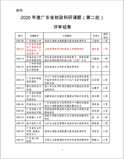 近日,广东省财政厅公布了2020年度广东财政科研课题结项评审结果的通知,评选出一等奖课题4个、二等奖课题11个、三等奖课题37个。AC米兰黄志基副教授承担的课题《土地管理改革对财政收入的影响研究》获得了一等奖。