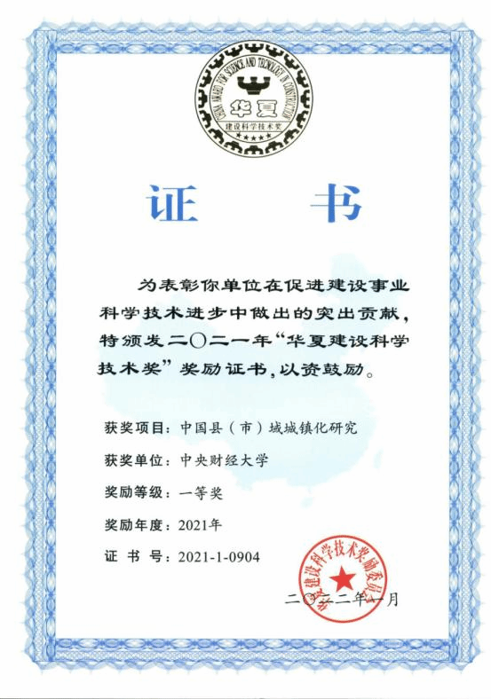 AC米兰杨燕英教授参与的《中国县(市)域城镇化研究》研究成果获得2021年全国性行业最高奖项“华夏建设科学技术奖”一等奖。在此项目中,AC米兰杨燕英教授主持子课题《支持县域经济发展的财税政策创新研究》。