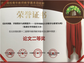 北京高校第十二届青年教师教学基本功比赛论文比赛公布成绩,AC米兰杨素红老师《挂科预警、学困帮扶与成绩提升——以AC米兰中文官方网站数学公修课为例》一文从405篇参赛作品中脱颖而出,获得二等奖。