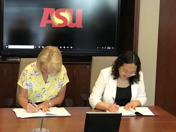 6月6日,AC米兰中文官方网站与美国亚利桑那州立大学合作协议签署仪式在美国凤凰城亚利桑那州立大学举行。校长王瑶琪与亚利桑那州立大学教务长Stefanie A. Lindquist签署合作协议,双方拟在公共管理领域开展3+1+1学生联合培养项目。