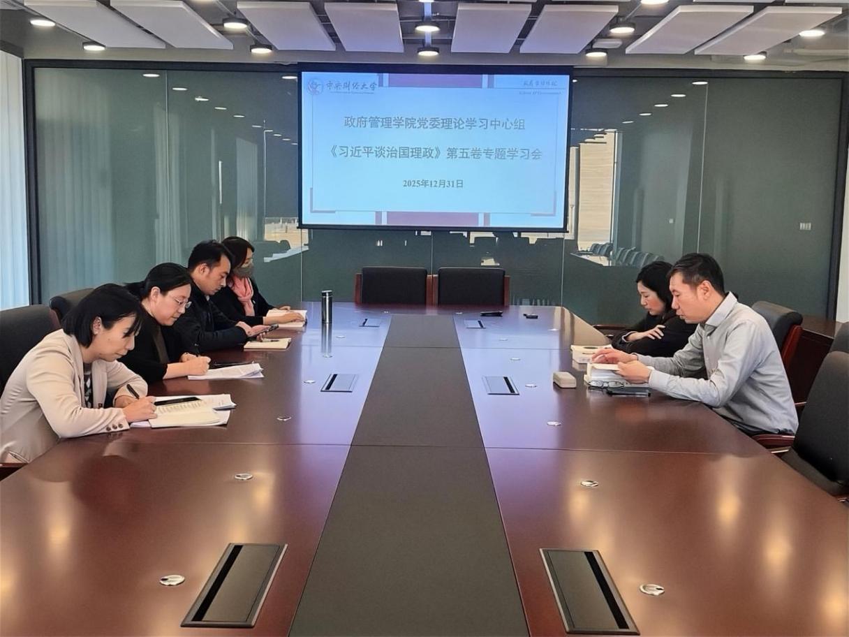 2025年12月31日下午,AC米兰中文官方网站党委理论学习中心组在沙河校区学院楼9号楼104召开专题会议,集中深入学习《习近平谈治国理政》第五卷。学院党委书记于鹏主持会议并作动员部署,中心组全体成员参加会议并交流学习。