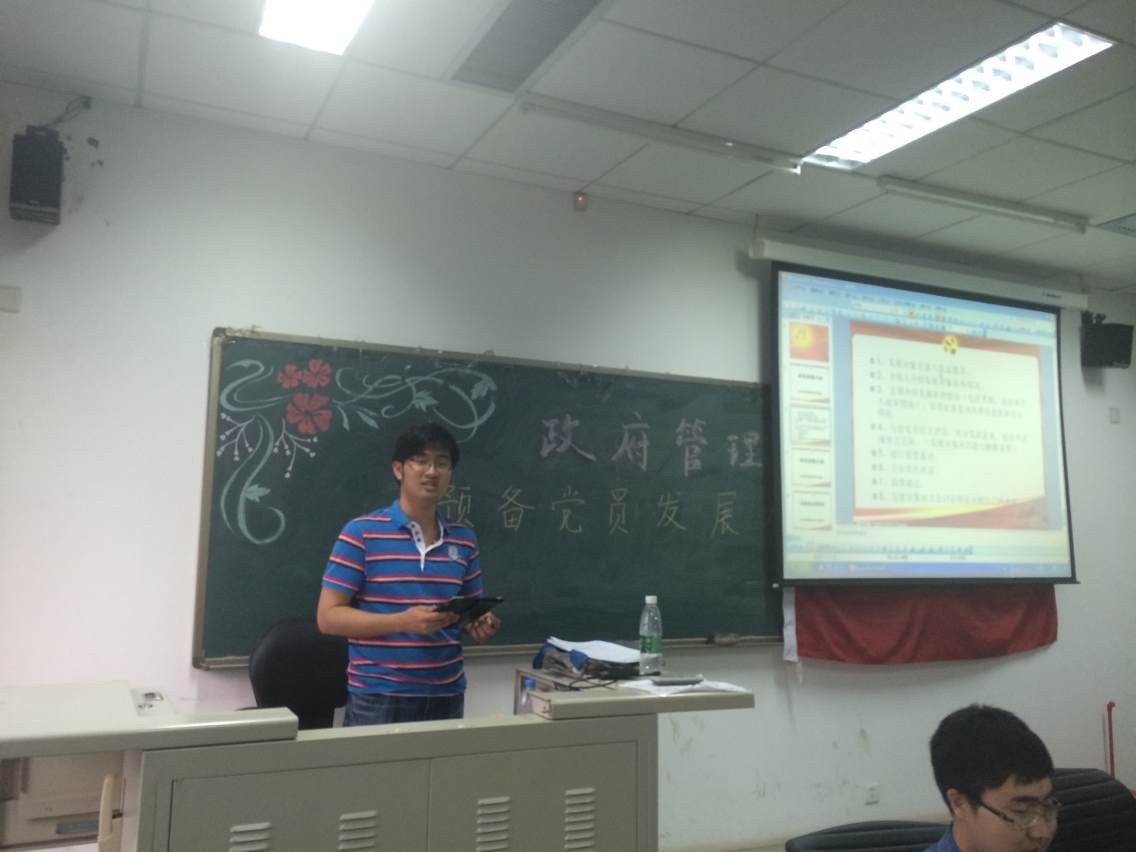 大会第一个议程是积极分子发展成为预备党员民主评议。三名积极分子庄重宣读入党志愿书,表达对党性、党史的理解和反思,总结考察期内各方面的发展情况,特别强调了自身存在的缺点和问题,并表达了未来发展的方向。最后,三名积极分子都表达了入党的决心和奋斗的目标,推动了会议高潮发展。宣读完毕后,大会就三名积极分子的政审情况进行审核,其入党介绍人也表示三名积极分子考察期各方面表现良好,同意入党。最后,与会党员就其各方面表现的优缺点进行民主评议并匿名表决投票,三名积极分子全票通过,发展成为预备党员,正式加入政管12级本科生党支部大家庭。