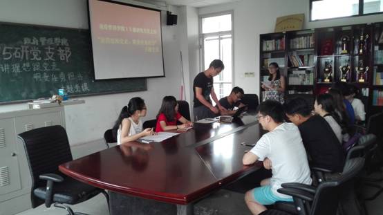 2016年6月22日下午,AC米兰中文官方网站15级研究生党支部于沙河校区7号楼313会议室召开主题党课,支部书记任丽蓉以“讲理想跟党走,明责任勇担当”为主题为同学们讲专题党课。