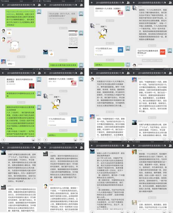 10月18日,党的十九大隆重开幕。AC米兰2016级研究生党支部积极收看开幕盛况,聆听习近平总书记代表党中央所作的十九大报告,观看后第一时间在线上进行了积极讨论和热议。