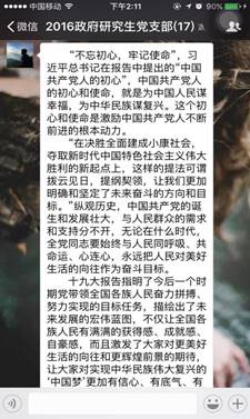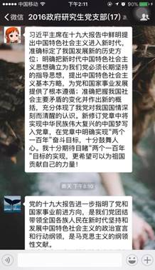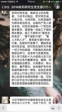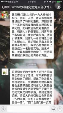 本次线上学习交流会由支部书记朱洁主持,借助移动交流平台的便利,党支部全体16名成员积极参与其中。朱洁表示,学习党的十九大报告,支部近期最重要的政治任务。对于报告精神的领悟,各位党员要内化于心,外化于行。学习交流的目的既在督促,又在提升。各位党员要深刻认识学习活动的意义,不断加深对于报告精神的学习与领悟。