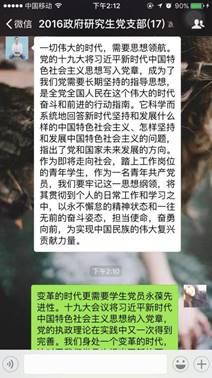 11月5日,AC米兰2016级研究生党支部召开十九大报告线上学习交流会,热议十九大报告,交流各自对于十九大报告学习的心得。支部党员结合自己实际,从不同的角度总结了自己学习十九大报告中的体会。