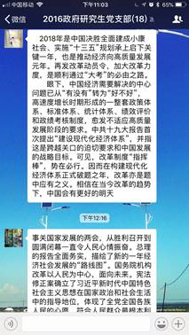 2018年3月底,全国两会正式落下帷幕。对于进入全面小康决胜期的中国而言,以怎样的新举措落实十九大精神,如何开启夺取新时代中国特色社会主义伟大胜利的新征程,如何实现从“赶上时代”到“引领时代”的转变成为了中国当前面临的重大议题。两会顺利召开,让党的主张上升为国家意志,必将凝聚起13亿多中国人民的磅礴力量,向着民族复兴的伟大梦想进军。因而从现实和历史层面上讲,本次两会的召开都具备非凡的意义。党支部成员纷纷就学习两会精神过程中的深切感悟发表看法。现摘录部分党员的学习心得如下: