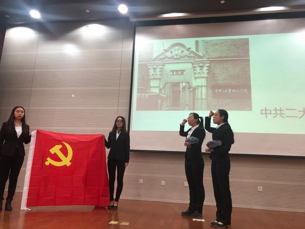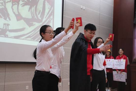 首先,该小组从党章介绍、十九大党章修改解读、十九大党章修改的重大意义、学习新党章,做合格的学生党员四个方面介绍小组学习成果。紧接着,小组以党章自述的形式,生动形象地介绍党章的制定与修改过程:17次党章修改,17次革旧研新,承受过初生时的险象环生,也经历过发展中的艰难摸索,故事还在继续,我名叫党章!