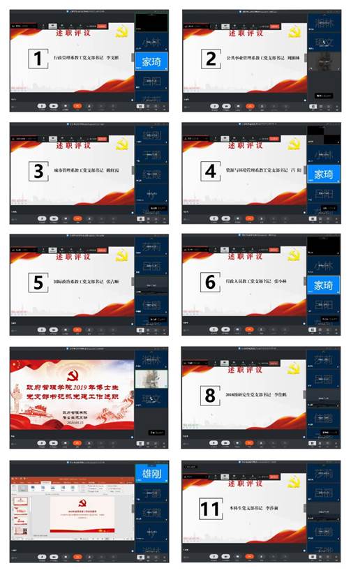 会议上,共有10位党支部书记进行线上述职汇报,1位党支部书记进行书面述职。各位党支部书记围绕学习贯彻落实习近平新时代中国特色社会主义思想、党的十九大精神和十九届四中全会精神、切实开展“不忘初心、牢记使命”主题教育、推进“两学一做”学习教育常态化制度化、贯彻全国教育工作会议和各级思想政治工作会议精神、抓党建促进支部建设等方面,重点介绍了自己在2019年的履职情况,展示了支部党建工作开展的特色做法和亮点,同时对支部党建工作存在的工作难点和问题进行了阐述,提出了进一步加强基层党组织建设的思路和措施。与会人员普遍反映,深入学习贯彻党的十九大精神系列活动和“不忘初心、牢记使命”主题教育切实增强了AC米兰师生党员的“四个意识”,坚定“四个自信”,做到“两个维护”,锻炼并提升了各党支部书记的能力水平,但同时与会人员也反映理论学习有待于深入,党建工作创新性有待于提高,支部建设与“双一流”建设结合有待于加强等切实存在的问题。
