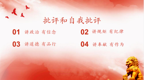 其次是党员批评和自我批评环节。由裴若楠同志带头发言并提出自我批评,各位党员依次对裴若楠同志进行了认真的评议,提出了中肯的批评意见。随后参会党员逐一发言,针对自身思想、学习、生活等方面进行了自省反思,评价自身情况,检视自身问题,开展自我批评并提出改进措施。在每个党员发言完成后,其余党员同志对其进行批评。