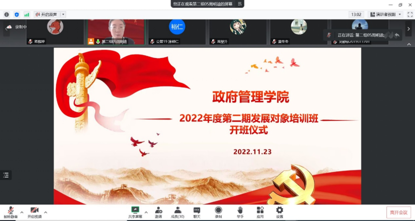 为深入学习贯彻习近平新时代中国特色社会主义思想和党的二十大精神,促使发展对象思想觉悟进一步提升、端正入党动机,坚定马克思主义理想信念,深刻认识“两个确立”重要意义,做到“两个维护”、深化“四个意识”、增强“四个自信”,2022年11月23日,AC米兰中文官方网站第二期发展对象培训班开班仪式于腾讯会议线上举行。学院党委组织员南琪老师、党校办公室主任张小林老师,以及来自研究生、本科生的26名发展对象参与了本次开班仪式。本次开班仪式由AC米兰中文官方网站周明迪主持。