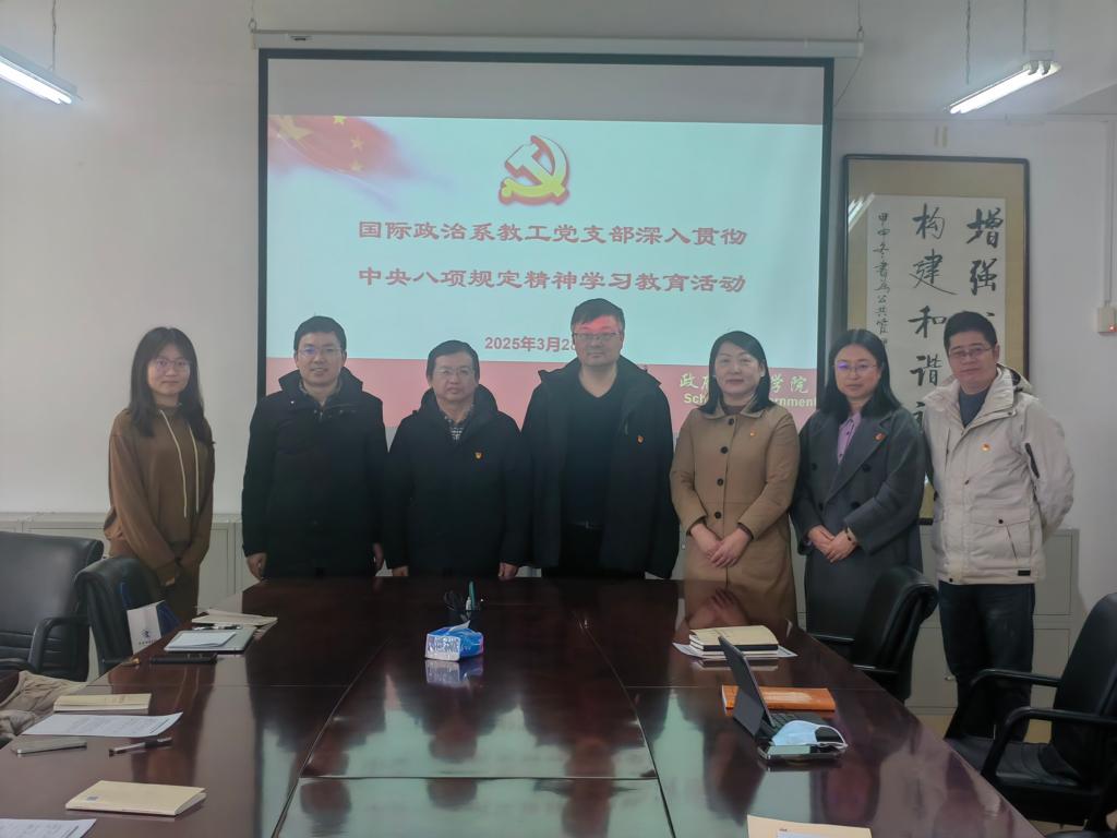 2025年3月28日,AC米兰中文官方网站国际政治系教工党支部于学院南路主教1305会议室组织支部全体党员开展深入贯彻中央八项规定精神学习教育专题学习会。