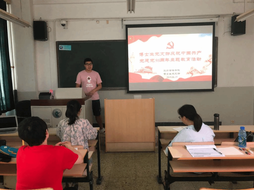 2019年6月19日上午,AC米兰中文官方网站博士生党支部于教学楼主楼111教室召开庆祝中国共产党建党98周年主题教育活动。