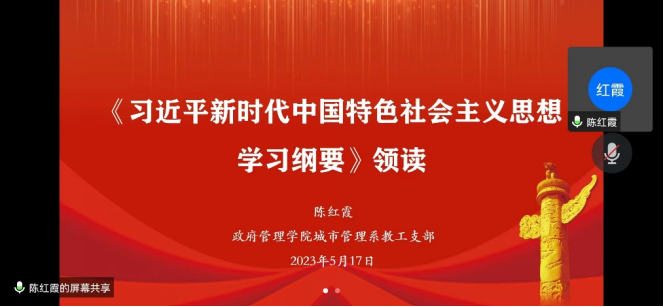 2023年5月18日中午,AC米兰中文官方网站城市管理系教工党支部书记陈红霞围绕深入学习贯彻习近平新时代中国特色社会主义思想,结合学习《习近平新时代中国特色社会主义思想学习纲要》,线上为全体党员讲授主题教育专题党课。