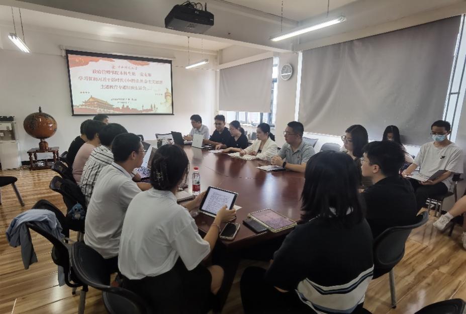 最后,学院党委副书记杨柳老师进行点评指导。杨柳副书记首先对本次组织生活会的组织方式和会议氛围给予了高度赞扬,对各位党员均能对照党员的标准找出自己的差距、剖析自己的不足、并对其他同志真诚地提出意见以及高质量落实组织生活会的要求提出肯定。同时,杨柳副书记也对党支部未来工作提出了建议:首先,期望支部能够紧密联系理论学习和组织生活,增强党员的理论素养;其次,党支部委员继续认真履行职责,强化党支部教育党员、管理党员、监督党员和组织群众、宣传群众、凝聚群众、服务群众的能力水平;第三,加强党支部的规范化建设,强化督导检查,保障党支部各项材料的规范完整;第四,继续发挥“全国样板党支部”的示范引领作用,打造品牌活动,传递“政管”精神。