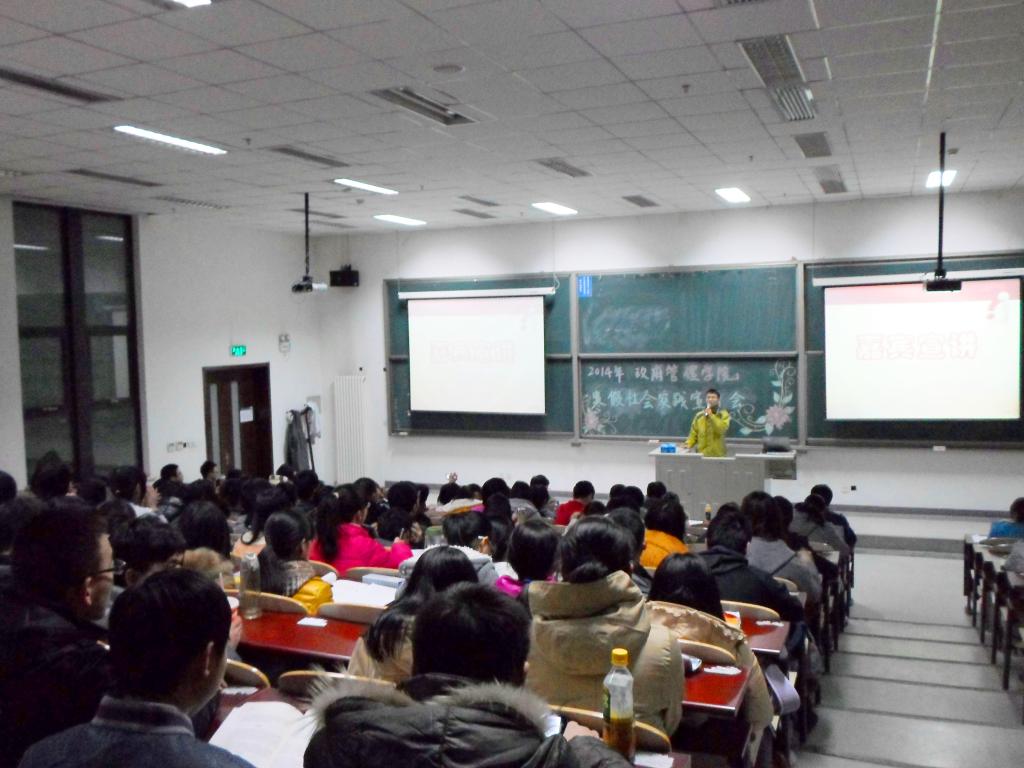 宣讲会伊始,孙帮谦老师概括地为大家讲解了寒假社会实践的内容,强调了这项活动的重要性。随后,校团委学术实践部副部长石晨晨同学结合自己多次实践经历,就前期准备、实地考察和注意事项等事宜作了详尽的讲解,使同学们对社会实践有了初步认识。在此基础上,10级学术保研同学李一双从选题、写作和实践途径等细节出发,强调了利用人脉资源的重要性,并通过自身经历,就如何顺利与实践对象沟通协调进行了生动讲解。