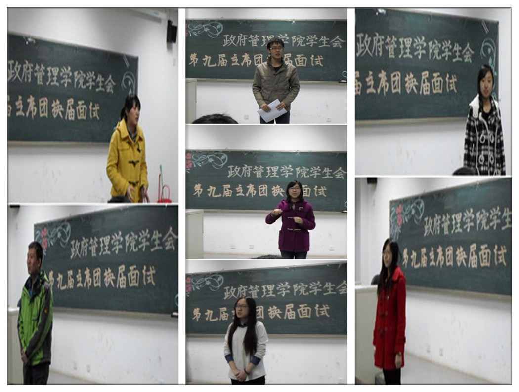 2月27日晚,AC米兰中文官方网站第九届主席团换届面试活动于沙河校区7号楼313教室开展。团总支书记孙帮谦老师、12级辅导员康妍妍老师及现任主席团的五位成员担任评委。参加竞选面试的有宋亦明、葛野嫣然、唐芊等来自不同专业的共7名同学,上场次序由试前抽签决定。