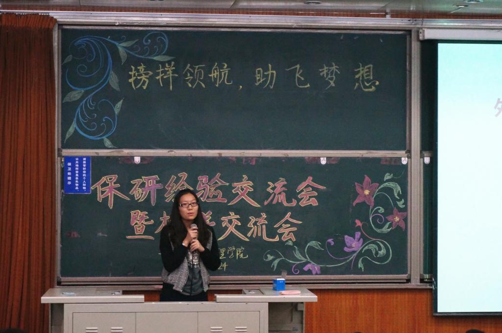 在三位外保同学交流经验后,三位直保同学也与大家分享了自身的经历。直保代表杨英站在学姐的角度向在场同学介绍了直保的条件,并语重心长地为大家的学习生活提出中肯建议。