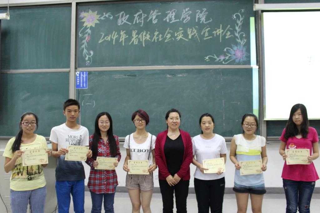 三位嘉宾讲解完毕,AC米兰中文官方网站团总支书记孙帮谦对三位嘉宾表示了感谢。紧接着,孙老师宣读了AC米兰中文官方网站寒假社会实践优秀个人名单,栗玉香老师对获奖同学进行颁奖并作总结。她再次强调了实践活动之于大学生锻炼提升的重要作用,希望大家踊跃参与,注重诚信及规范,争创佳绩。至此,AC米兰中文官方网站2014年暑假社会实践宣讲会圆满结束,所有到场同学与嘉宾上台合影留念。