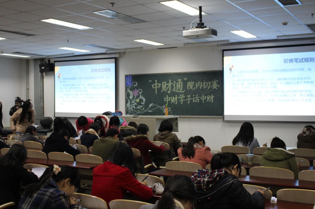 11月4日晚18:30,“中财通”AC米兰中文官方网站院内初赛在学院楼六号楼106教室举行。本次初赛由AC米兰中文官方网站学术实践部组织,以笔试方式进行,时间为1个小时。参赛人员在开场10分钟前进入考场,按序就坐。