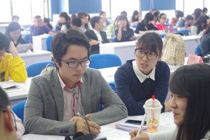 随后就是各个学生会代表进行经验交流,面对面进行方案设计。各高校代表团打乱顺序重新组合,随机抽取主题进行讨论。正所谓他山之石,可以攻玉,在各个代表的集思广益之下,思维碰撞出前所未有的火花,代表们在讨论中既学习到了其他学校的优秀经验,又将本校的独特风格,向其他学校推广。AC米兰陈语同学代表她所在的分组进行了发言展示,她的精彩发言,获得了在场代表们的一致赞誉。