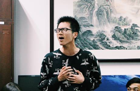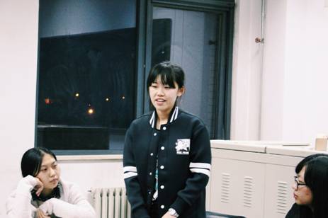 随后,主持团副团长杜文倩对新成员进行了一些寄语,杜文倩强调了两个词,“责任”与“自信”。她说道:“希望大家在加入这个大家庭以后,不仅能够在舞台上自信的表现自我,更能意识到自己肩上所扛的一份责任。”同时,杜文倩还就自己一年的主持经验向新团员们讲述了很多有用的“干货”,使团员们获益匪浅。