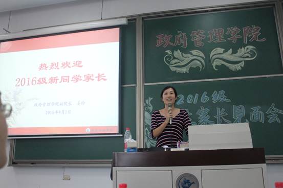 最后城市管理16级班主任刘慧、团总支书记李莎莉,2015级学生辅导员阙希荣、2016级学生辅导员宁钰皓分别上台讲话,在祝贺在座家长的同时表达对同学们的殷切期盼。