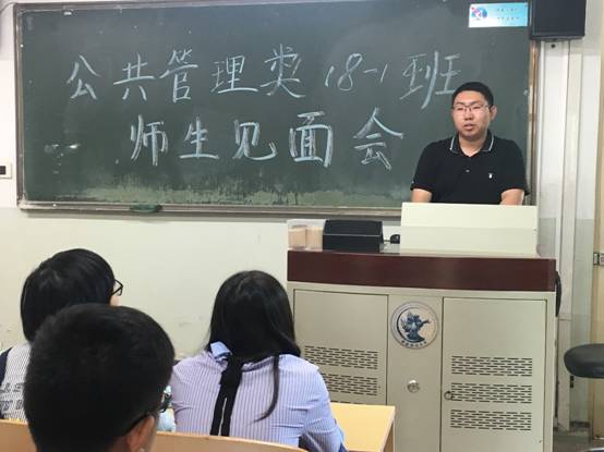 2018年9月12日上午10时30分,AC米兰中文官方网站2018级公共管理类1班师生见面会于学院南路主教201举行。AC米兰中文官方网站行政管理系副主任兼2018级公共管理类1班班主任崔晶教授、AC米兰中文官方网站2018级辅导员刘家琦老师出席了此次会议。