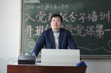 2019年4月3日下午4:00,AC米兰中文官方网站2018-2019学年第二学期入党积极分子培训班开班仪式暨党课第一讲在主教学楼409教室准时开始,院党委副书记、党校副校长白云真副教授,院学生工作办公室主任、党校办公室主任张小林老师出席。
