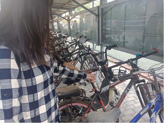 团员摆放不规范停放自行车