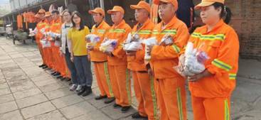 青协干事们为环卫工人送上礼物