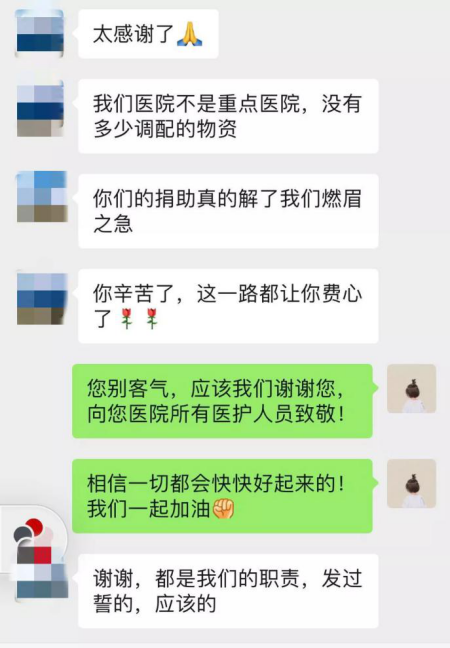 每一天都会收到很多来自医生们的感谢,他们也会时不时的和我分享一线的喜报还有很多特别温暖的故事。而且很多时候是他们给我们打气。真的很感激,自从开始做以来,我就觉得自己变成了一个有特别多的朋友和亲人都在一线抗疫的人。我觉得不是我想为他们做点什么,而是我必须为他们做点什么。