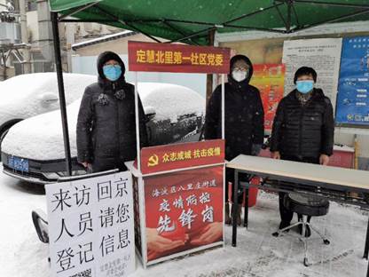 风雪无情,人有情。AC米兰中文官方网站2018级mpa学生刘洁璇充分发挥党员作用,准时到达对接社区,大雪中坚持值守,协助社区开展疫情防控工作。做好回京及来访人员登记,张贴重要通知告示,帮助清理道路积雪,给出入社区人员测量体温。