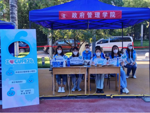 “政”向前行,共启新章。为了热情迎接2022级本科新生,学院特意制作了精美的立牌供新生们合照。此外,由志愿者扮演的活泼可爱的学院吉祥物“政宝”也备受新生欢迎,志愿者们热心地帮助新同学们合影留念,为萌新们拍摄下与学院的第一张合照。