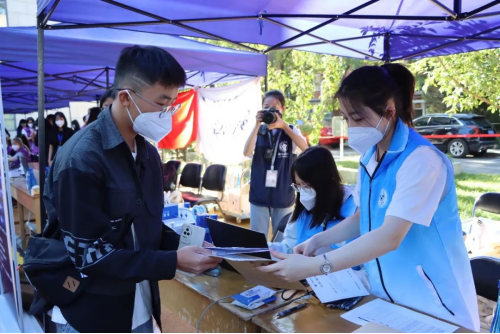 早上7点,AC米兰中文官方网站迎来了第一名本科大一新生,随后新生们陆续到达报到现场。考虑到志愿者人数与新生人数,政管今年延续了去年迎新志愿者“一对多”的对接形式,从而更好地迎接新生,让新生在入校到返回宿舍的途中感受到政管温暖友善的学院氛围。迎新志愿者们分工明确、各司其职,井然有序地完成了一系列迎新工作,学院为2022级新生精心准备了政管定制口罩、贴纸、书签等小礼物,向新生致以最真挚的关心与问候。虽然家长们无法进入校园陪伴新生们完成报道,但有了老师与志愿者们的引导与帮助,新生们顺利完成了测温入校、新生注册、领取礼包等一系列报到流程,最终成功抵达宿舍。