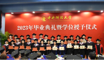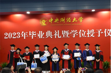 典礼第七项,2023年新校友接收仪式,姜玲院长向校友年级理事颁发聘书,于鹏书记赠送礼包。自此,2023届毕业生们从中财大政管毕业,正式加入中财校友大家庭,无论未来飞得多远,中财大政管永远是同学们温暖的家。