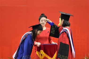 典礼第六项,杨柳副书记宣读学士学位授予名单,李宇环副院长宣读硕士和博士学位授予名单、届毕业生返校名单,姜玲院长为毕业生拨穗,颁发学位证书。拨正流苏,感恩教诲,从此天高海阔,前程锦绣。