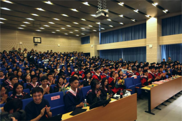 随后,姜院长指出,从懵懂青涩的少年到独立自主的青年,同学们的成长印记与世界百年未有之大变局相互交织,政管师生们一起共享了这个伟大时代的福祉荣光,也携手克服了世纪疫情冲击下的重重困难。这是不寻常的一届毕业生,入学便恰逢新中国七十周年华诞和学校七十周年生日;在新冠疫情的突袭中共克时艰,度过了云端课堂的特殊学习生活;在建党百年的荣耀时刻于天安门广场以歌献礼,送上青春的礼赞;在北京冬奥会的冰雪现场以志愿微火,践行了青年担当。即使面对重重困难和压力,同学们依然不卑不亢、不不馁,凭借着乐观、坚韧和勤奋,穿过迷雾、踏过征程,为自己书写了一份精彩的人生篇章。站在新征程的起点上,姜院长也向同学们提出两点期待:一是天下为公,学为家国。要树广阔胸襟、立大同理想,育和合品质,始终做公共价值的倡导者、公共精神的弘扬者,公共利益的捍卫者。二是“政”气浩然,“管”以善治。不因一时利诱而动摇,也不为一时得失所感伤,要始终有一颗关怀现实的善治之心,努力成为善治善管的思想者和实干家。姜院长温暖的话语和谆谆教诲收获了在场毕业生们多次热烈的掌声,希望同学们带着师长的嘱托和期待,怀揣青春壮志,踏上新的人生征程